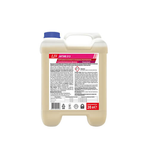 • Моющее средство 20 л LIV Актив 313, кислотное с пониженым пенообразованием и антибакт. эффектом