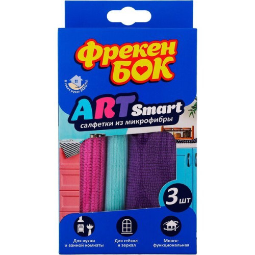 • Салфетка микрофибра (30х30 см) универсальная мульти, набор 3шт/уп. ART Smart,ФрекенБОК