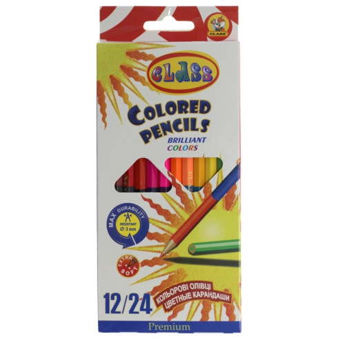 • Олівці кольорові,двухсторонні (12шт-24 кол.), Class Premium