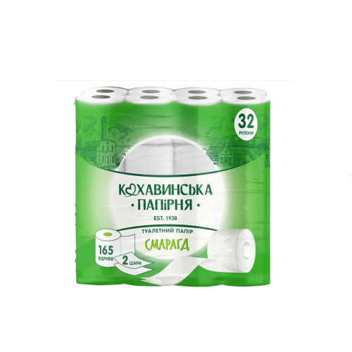 Туалетная бумага, целлюлозная, белая (96мм*110мм/19м) 2-х слойн./165 отрывов СМАРАГД
