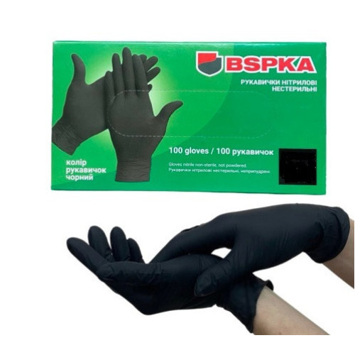 Перчатки, нитриловые, не, опудр, L, 100, шт, черная, BSPKA