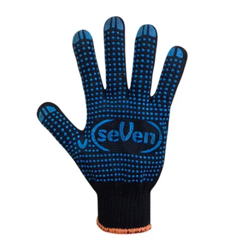• Перчатки трикотажные, с ПВХ 7-й класс, размер 10  (пять нитей), черные "Seven"
