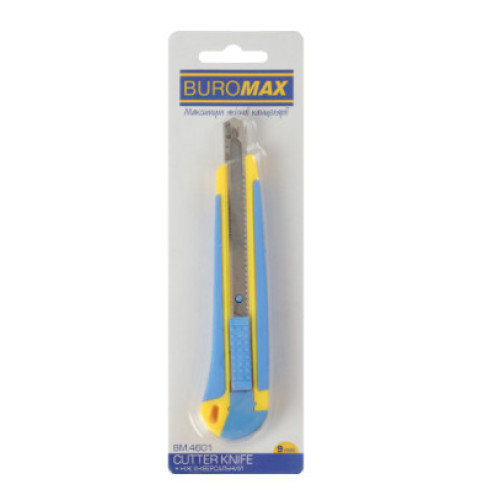 Нож канцелярский (9мм) прорезиненный корпус металлические направляющие BM.4601