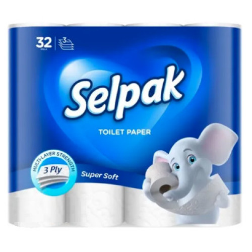 • Туалетная бумага целлюлозная рулон   3-х слойн. (91мм*125мм/18,75м-150отр) на гильзе белая  Selpak/32761801 (уп. 32шт)