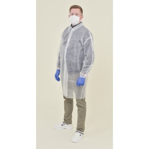• Халат полипропиленовый белый на кнопках, 30г/м2 р.XL в индивидуальной упаковке