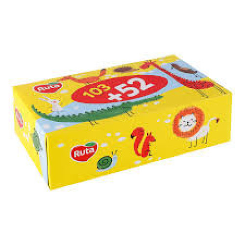 • Салфетки бумажные косметические в коробке 2-х слойн. (20см*19см/155шт), белые Ruta Kids