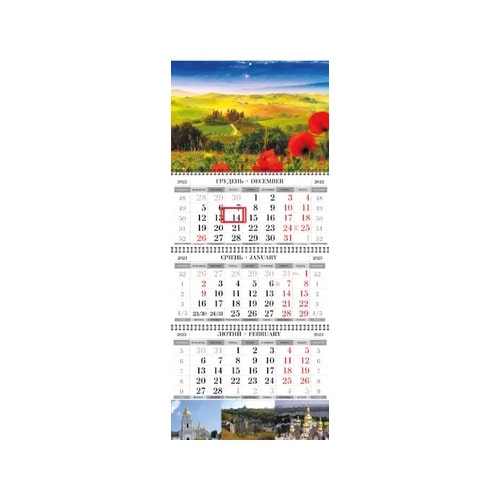 • Календар 2023 квартальний (3 спір.) 298х648 місто/природа