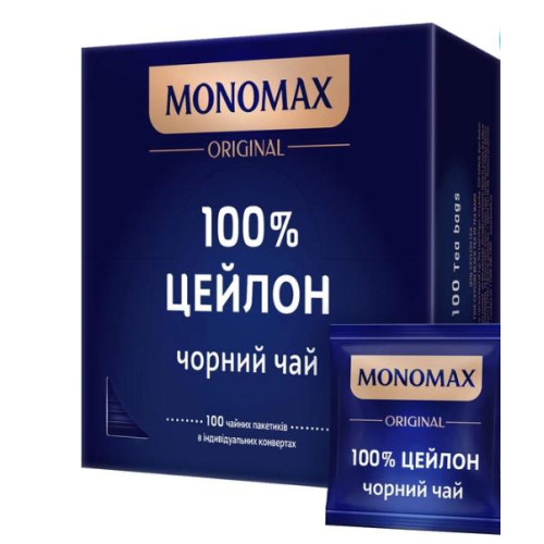 • Чай MONOMAX  100% CEYLON черный цейлонский (100пакетов в конвертиках*2гр)