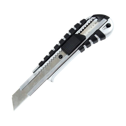 • Ніж канцелярський, лезо 18мм, металевий корпус., гумові вставки 6901-a