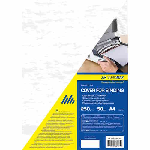 • Обкладинка для перфоібндера, А4, 250г/м2, картон, бел, під шкіру (50шт/уп) /  BM.0580-12