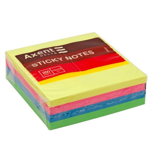 • Папір для нотаток клейкий 75х75х 250арк NEON MIX 3351-А