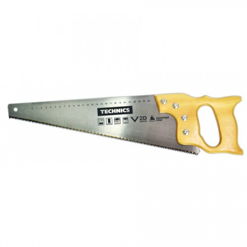 Пилка по дереву, дерев'яна ручка, гартовані зубці, 450 мм, 7/1", 2D