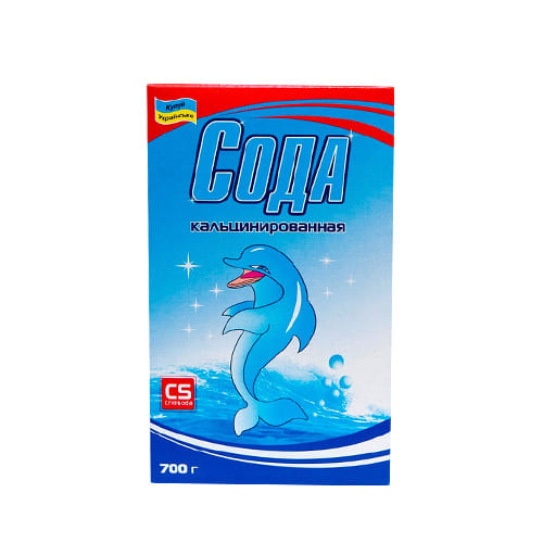 Сода кальцинована 700 гр фасована для побутового застосування. Використовується для миття посуду, керамічних поверхонь, санітарно-побутової техніки та інвентарю, а також для пом'якшення води при пранні і кип'ятінні бавовняних, лляних тканин. Склад: карбонат натрію 99,0-99,4%.