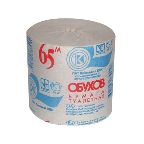 • Туалетний папір макулатур. "Обухов-65", 90*95мм, 65м