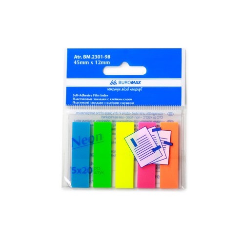 • Закладки з клейким шаром 45х12 / 20лх5 кол. пластик. NEON BM.2301-98