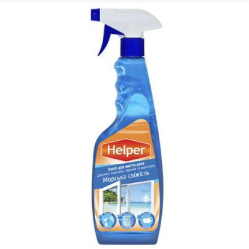 Очищаючий продукт торгової марки «Helper» для миття скла та зкеркал якісно очищає будь-які глянцеві поверхні, надаючи їм сліпучого блиску. Призначений для очищення наступних водостійких виробів та поверхонь: • склопакети; • дзеркала; • вітрини; • кахель; • вироби з кришталю; • інші глянцеві поверхні. Продукт безслідно видаляє сліди пальців, атмосферних опадів, кіптяви, пилу, жирних плям, слідів життєдіяльності комах. Усуває неприємні запахи. Засіб готовий до застосування і не вимагає попереднього приготування. Може використовуватися як у чистому вигляді, так і розведеному в пропорції один до чотирьох. Має приємний аромат. Не містить абразиву, тому не пошкоджує поверхню, що очищається. Наноситься на предмет, що очищається, за допомогою розпилювача. Час дії від 0,5 до 3 хвилин. Потім засіб слід витерти м'якою ганчіркою або паперовою серветкою. При використанні миючого розчину без розпилювача варто обробити загризену поверхню за допомогою губки, залишити на вищевказаний часовий інтервал, потім насухо витерти. Миючий засіб реалізується у двох видах: півлітрова ємність з пульверизатором та п'ятилітрова пластикова каністра.