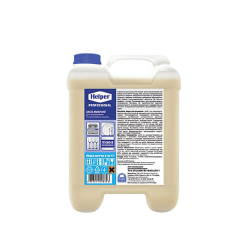 TM «Helper Professional» є унікальним миючим засобом для посудомийних машин професійного класу. Це концетрований лужний продукт із здатністю видалення жиру із поверхонь. При використанні спостерігається ефективне виведення органічних забруднень різного ступеня. Йдеться про видалення білків, жирів, залишків фруктів або овочів, що залишилися на поверхні. Засіб має концентрацію універсальних секвестрантів, які кондиціонують воду буквально будь-якої жорсткості. В результаті – жодних плям чи патьоків на вашому посуді. З головних переваг слід виділити й інші нюанси: • Ефективність та практичність у використанні помітні вже з першого застосування. Достатньо використовувати посудомийну машину. • Миючий засіб рекомендується для застосування не тільки у громадських закладах харчування, а й у дитячих дошкільних закладах. • Так званий «м'який склад» засобу не залишає на посуді хімічних елементів, при цьому якісно очищує поверхню. • Миючий засіб не впливає на руйнування матеріалів посуду (кераміка, скло тощо). Міністерство охорони здоров'я рекомендує до використання.
