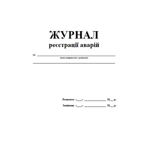 • Жукрнал реєстрації аварій 48арк.Оф.