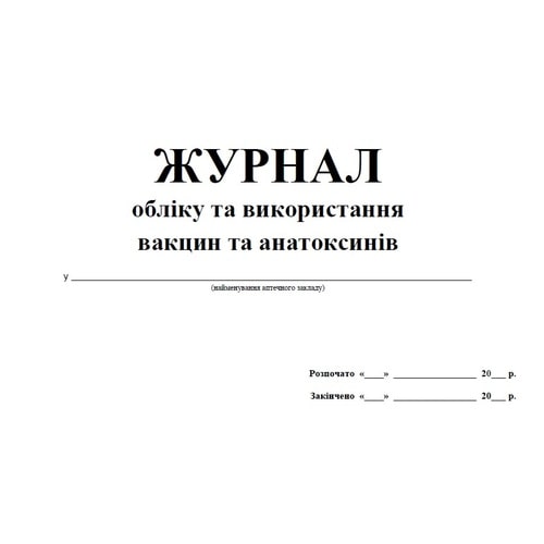 • Журнал обліку и використання вакцин та анатоксинів А4, (40стр.), м/о, газетка